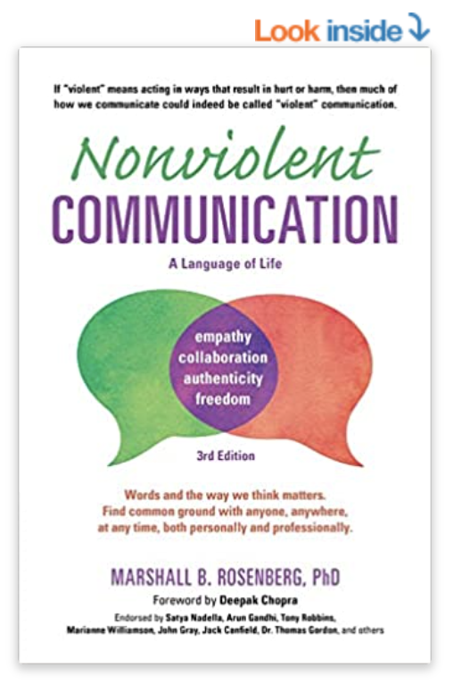 NVC. Nonviolent Communication by Marshall B. Rosenberg. This book can win an award for the worst book cover and typography. But that's not the point.