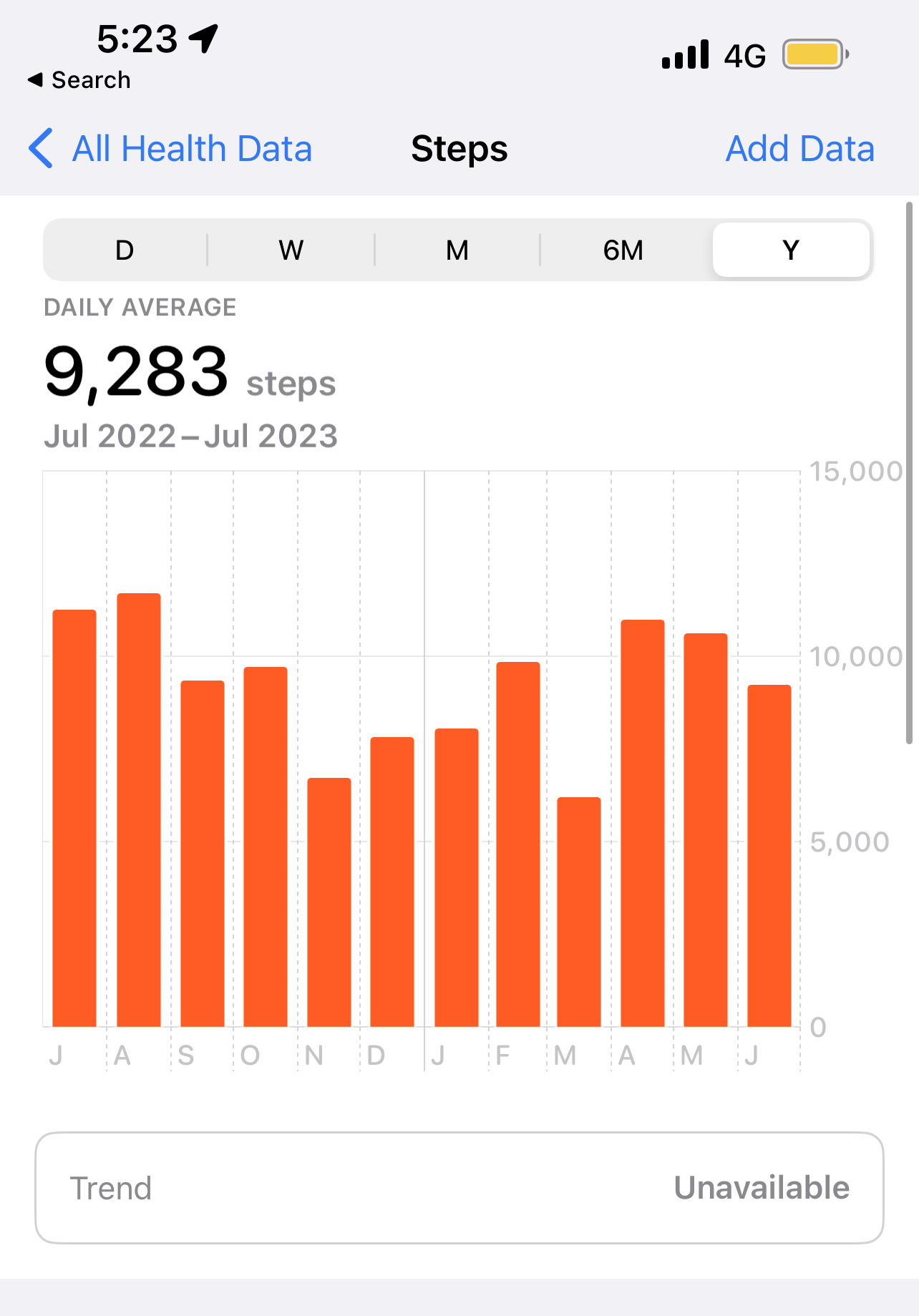 Here's my average daily steps during the last year. Naturally summer is the best for walking.